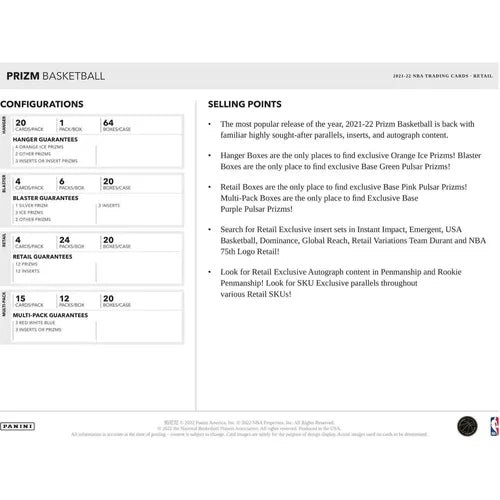 - The most popular release of the year, 2021-22 Prizm Basketball is back with familiar highly sought-after parallels, inserts, and autograph content.