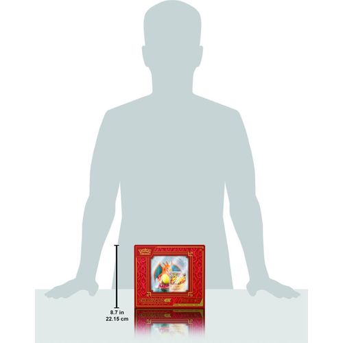 Charizard Guards Your Favorite Card!With explosive attacks and huge HP, Charizard ex has a commanding presence on the battlefield! Bring that burning tenacity to life on your desk, bookcase, or nightstand with an awesome Charizard figure featuring translucent fire effects to show off a favorite card—like the foil Charmander, Charmeleon, or Charizard ex you also get in this collection! Even more fun awaits in a stack of 10 booster packs from different Pokémon TCG expansions.The Pokémon TCG: Charizard ex Super-Premium Collection includes: